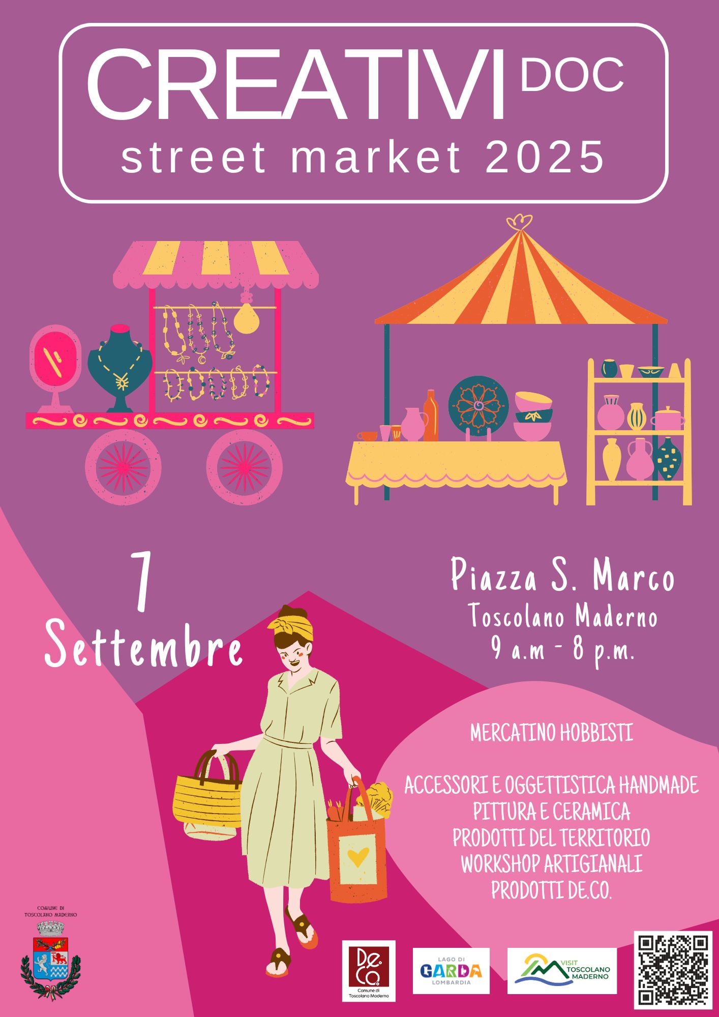Mercatino di hobbisti: accessori e oggettistica handmade, pittura e ceramica, prodotti del territorio e De.Co.